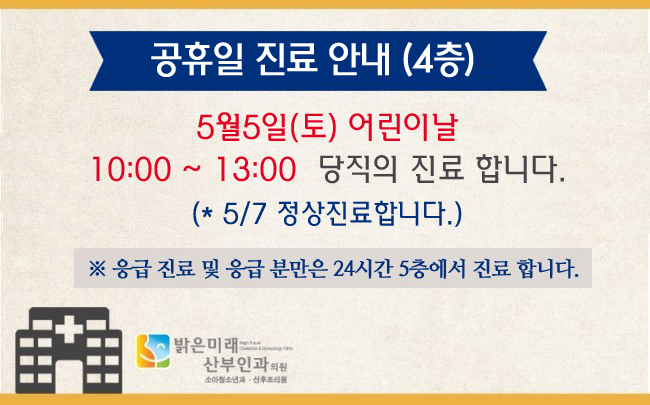 [진료시간 안내] 5/5 어린이날, 밝은미래산부인과 진료시간